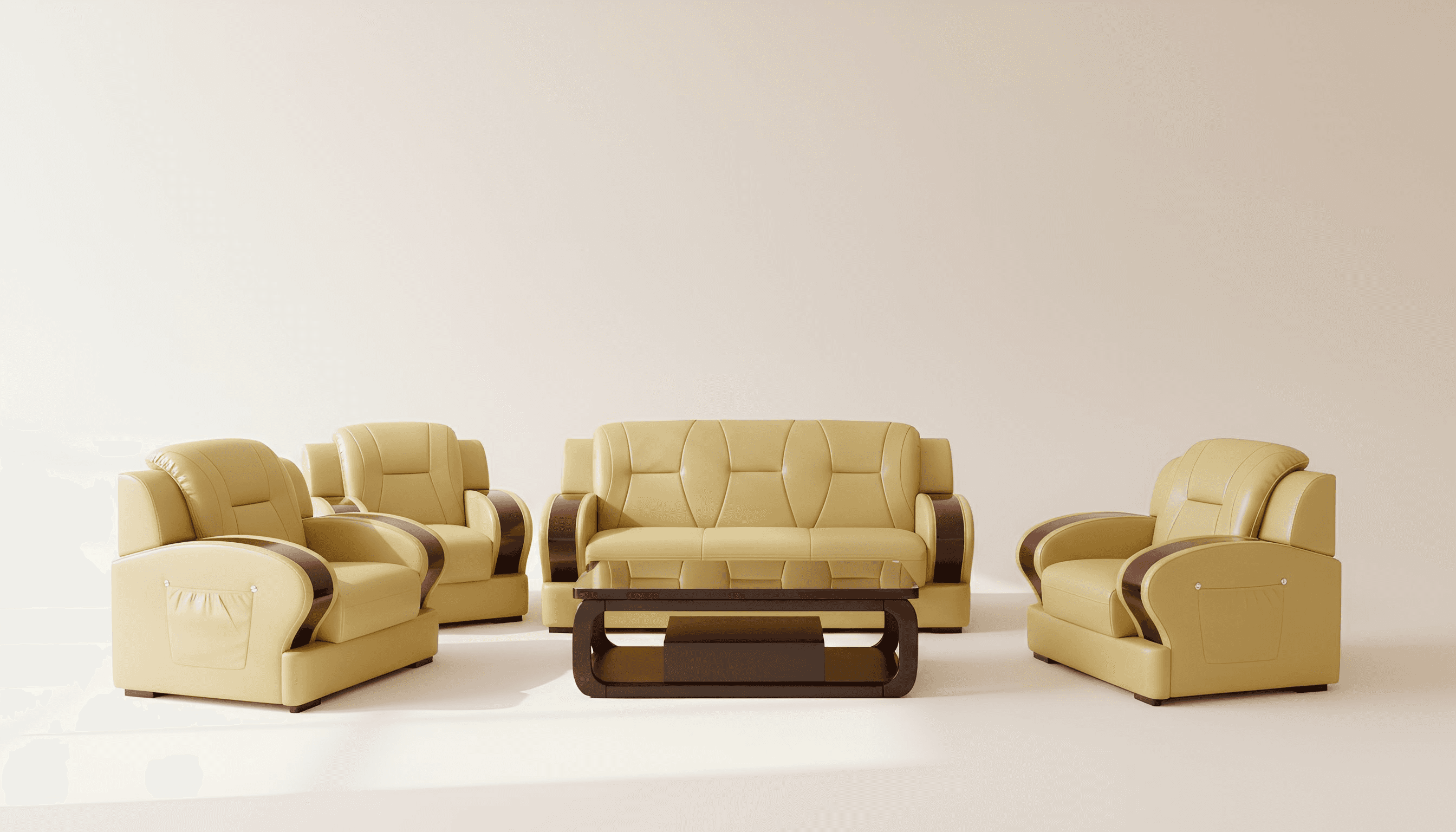 Bring warmth, elegance, and comfort into your living space with the Golden Luxe 3-2-1-1 Sofa Set. Upholstered in smooth cream leather, this set delivers a bright, sophisticated look that instantly elevates any room.